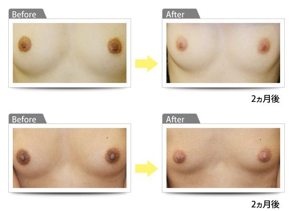 一度、黒く沈着してしまった乳首や乳倫の色を明るくして